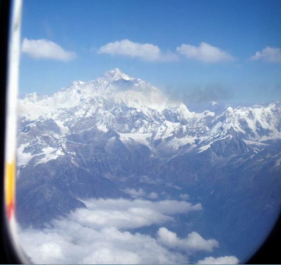 飞机舷窗里看到的珠穆朗玛峰。这辈子估计是无法登上去了,也就在天上看看。珠峰可以登上去,但无人能够征服。