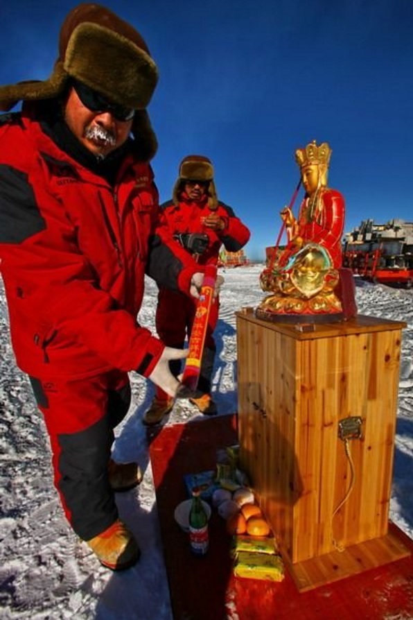 中科院专家在南极拜菩萨。佛教还是比较高级的宗教,信佛的人慈悲平和,而且似可以和现代科学技术和平共处,也不反科学,北京龙泉寺扫地僧的故事可谓脍炙人口。