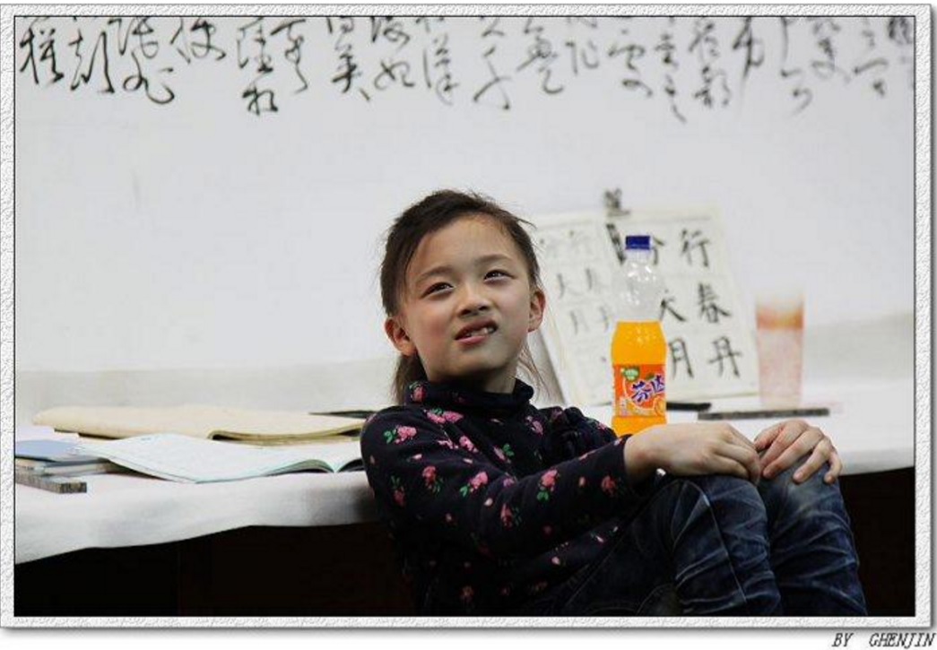 学书法的小女孩。