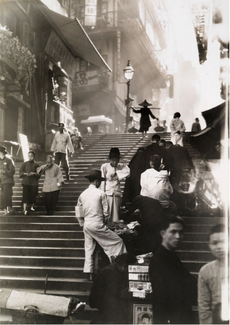 1934年的香港街头,远处挑担而来的,带着一种神秘的气场,好似归隐于市井之中的武林高手。